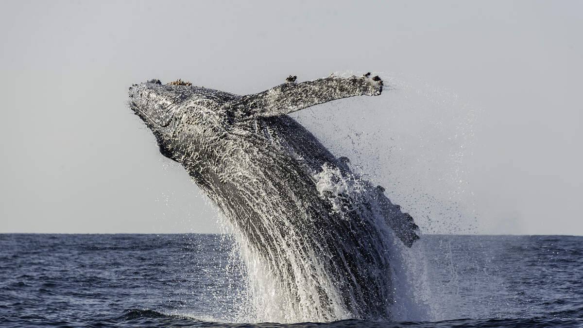 A humpback whale approached a group of tourists in Hawaii and swam up to their underwater camera.