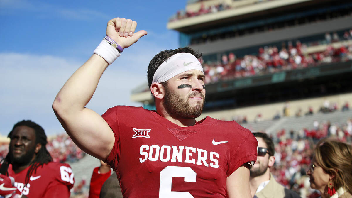 Mayfield won the Heisman in 2017 when he threw for 4,627 yards and 43 touchdowns and led O-U to a Big 12 Conference title and a trip to the College Football Playoff.