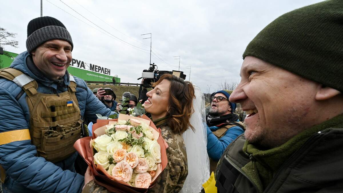 A Ukrainian couple who have been together for 22 years have now joined the fight against Russian forces and got married on the front line.