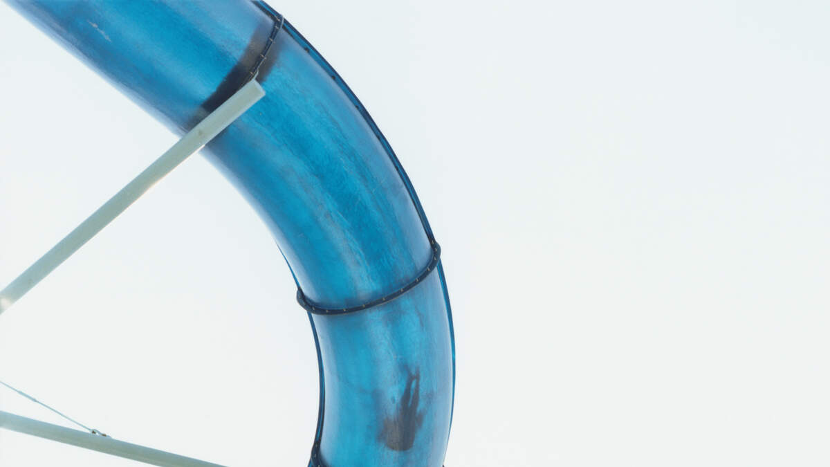 The video shows the woman sliding up one of the loops of the double-loop slide, losing momentum at the top of the slide, and then sliding back down and coming to a halt.