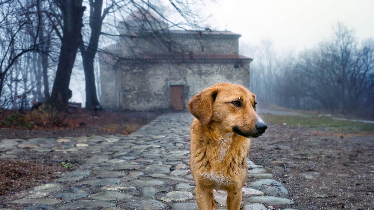 A human feeds a stray dog's babies, and the mama dog affectionately thanks her.