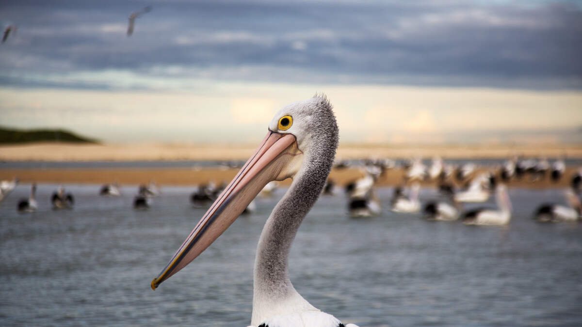 Photo: Getty ImagesA crowd watches a pelican twirl around and dance to a pianist playing music on a jetty in Australia.