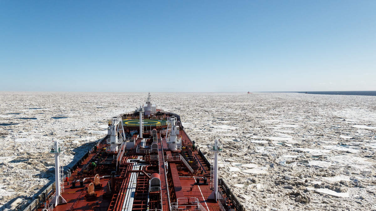 Photo: Getty Images A person stands in the middle of the Antarctic frozen tundra and hitches a ride on a huge ship.