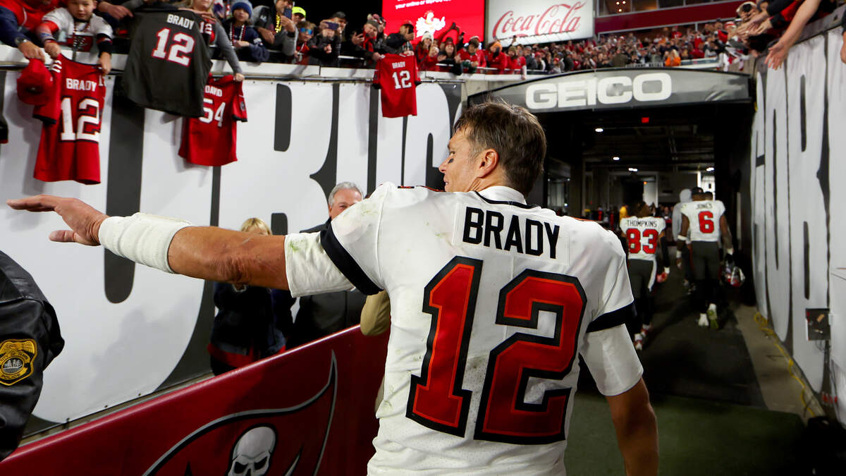 Brady finishes his career with seven Super Bowl titles and leads the league with the most passing yards and passing touchdowns of all time.