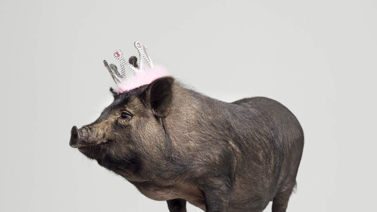 Norbert is a 150-pound black-and-white pig belonging to Vincent and Alicen Baran.