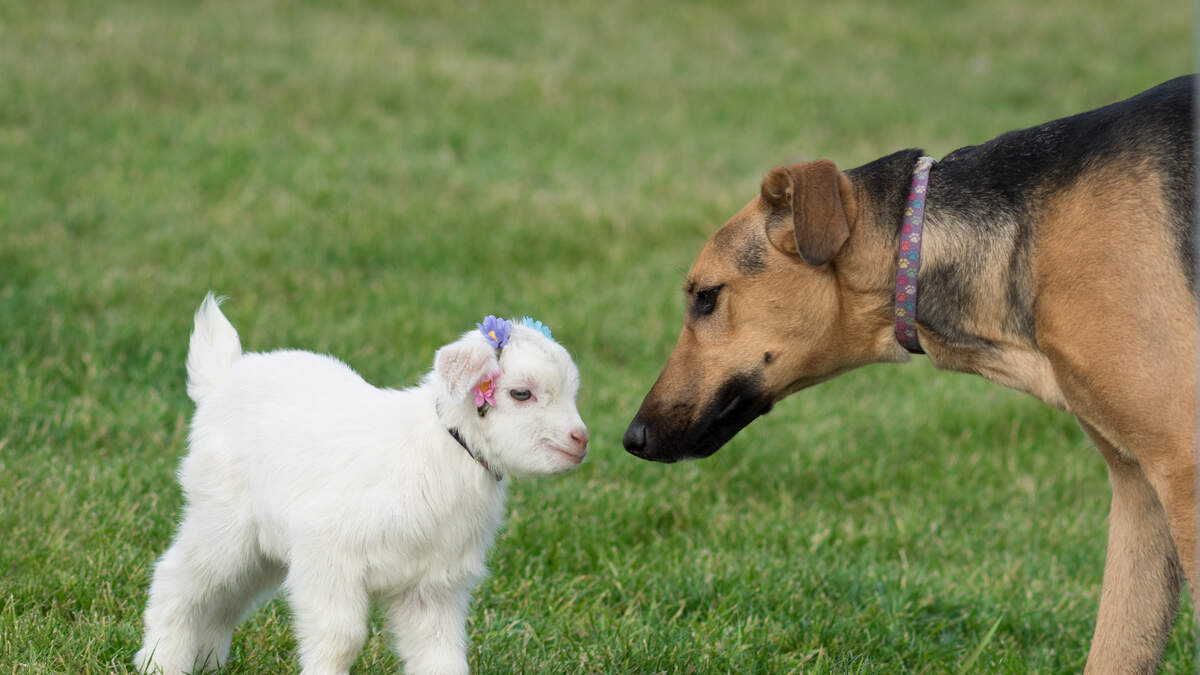 In a news release, the shelter says that Cinnamon the goat and Felix the dog were brought to the shelter on March 13th and are so attached that Felix will cry if the two animals are separated.
