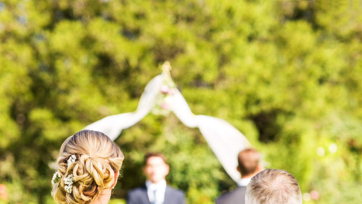 Madison’s parents love to entertain and were excited to host the nuptials at their home, but they had a lot of work to do to get it ready. The backyard is on a slope and has a huge garden bed that her dad had to remove to make room for chairs for the guests, but that was just one of the projects he spent a year doing. The mother of the bride also did work inside the house, like wallpapering the bathrooms and focusing on details to transform the space into their daughter’s “dream wedding venue.”