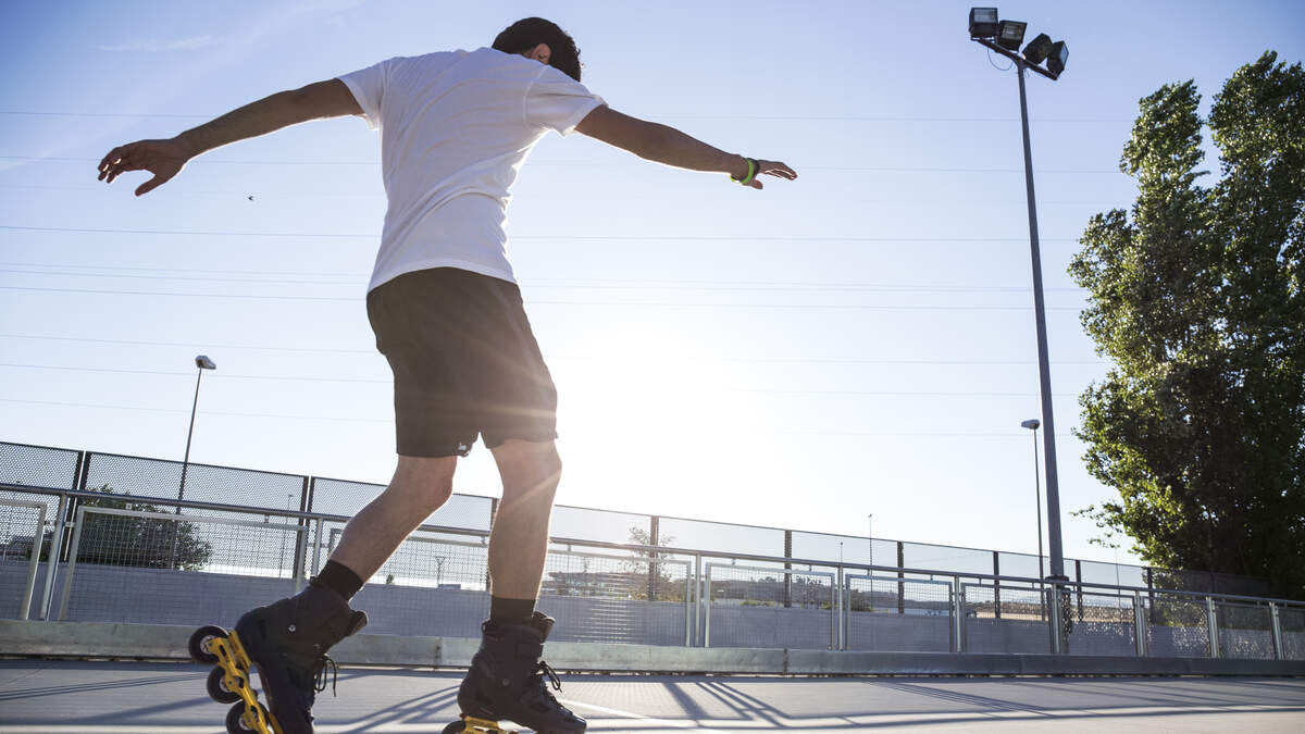 The suspect wore a hoodie and face mask while entering a gas station in Abington Township, while on roller blades.
